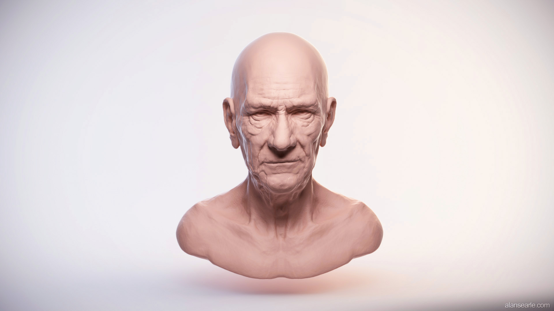 A fairly straight forward head anatomy study in ZBrush - concentrating mainly on skin folds and some wrinkle detail. Using mostly Dam Standard and Clay Tube brushes with some additional Trim Dynamic. Rendered in V-Ray.